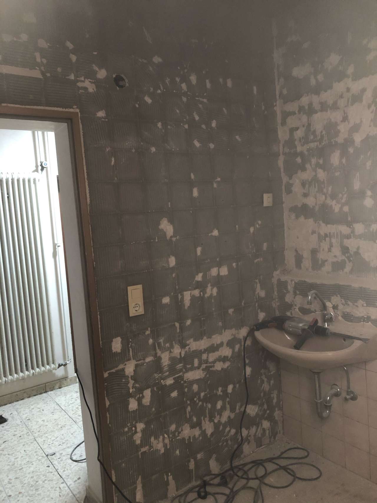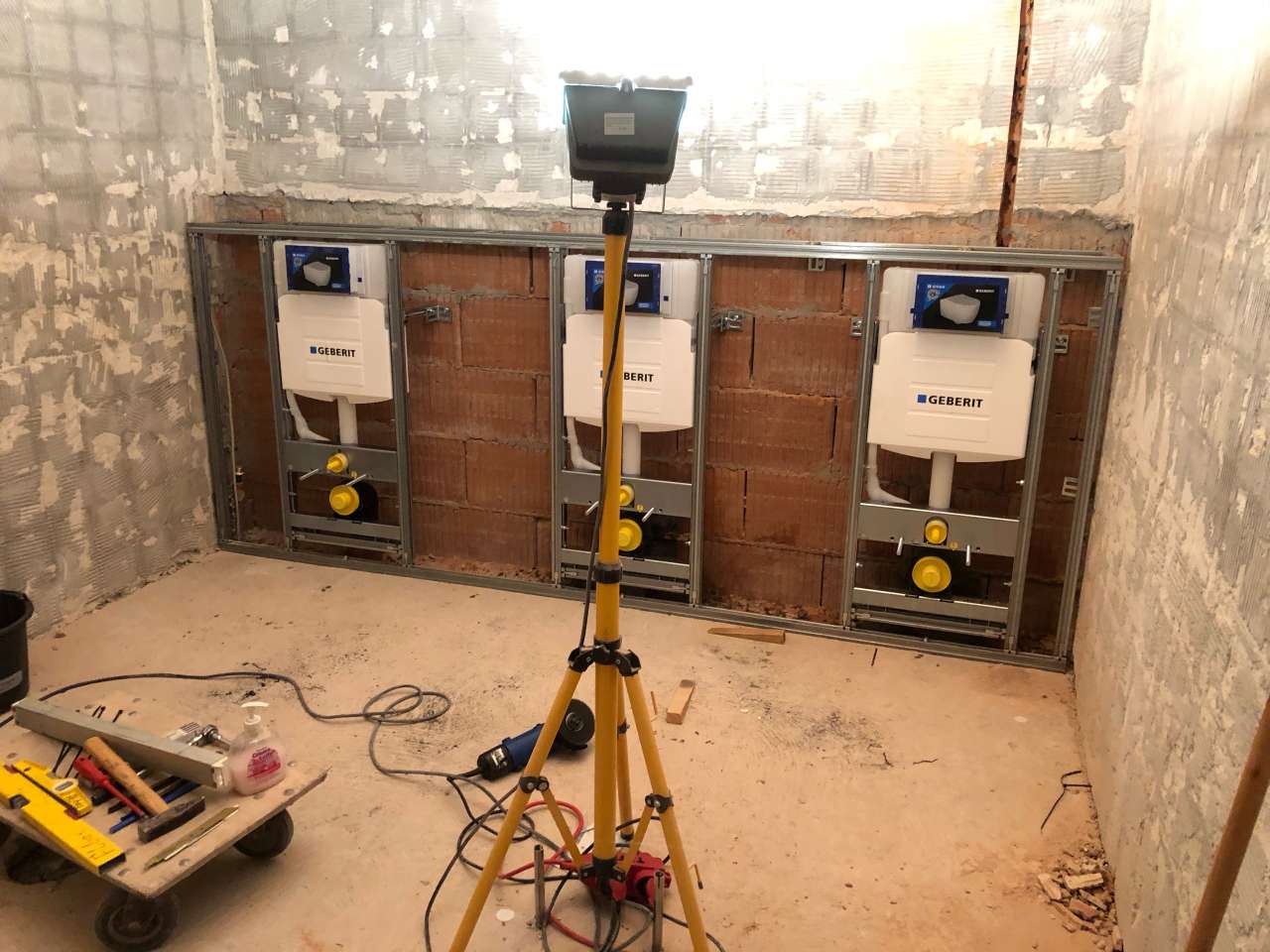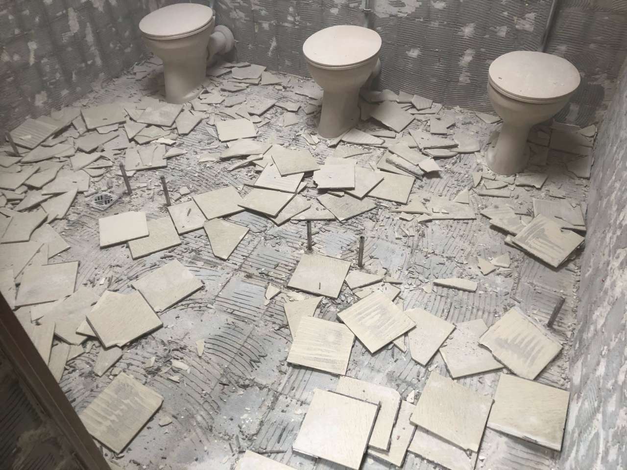 haben mit der Sanierung der Damentoilette auf dem TV Gelände begonnen. In den ersten Wochen wurden die alten Sanitäranlagen herausgerissen und die Fliesen von der Wand entfernt.