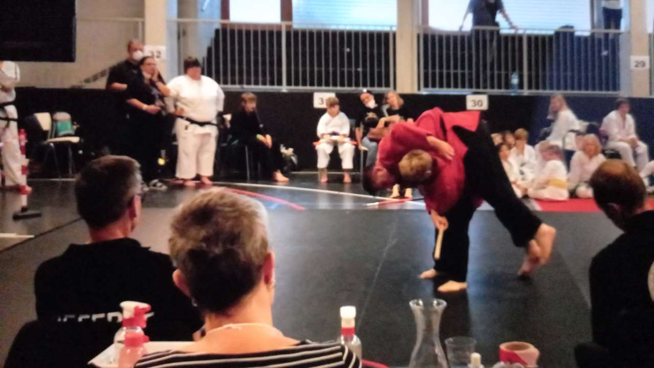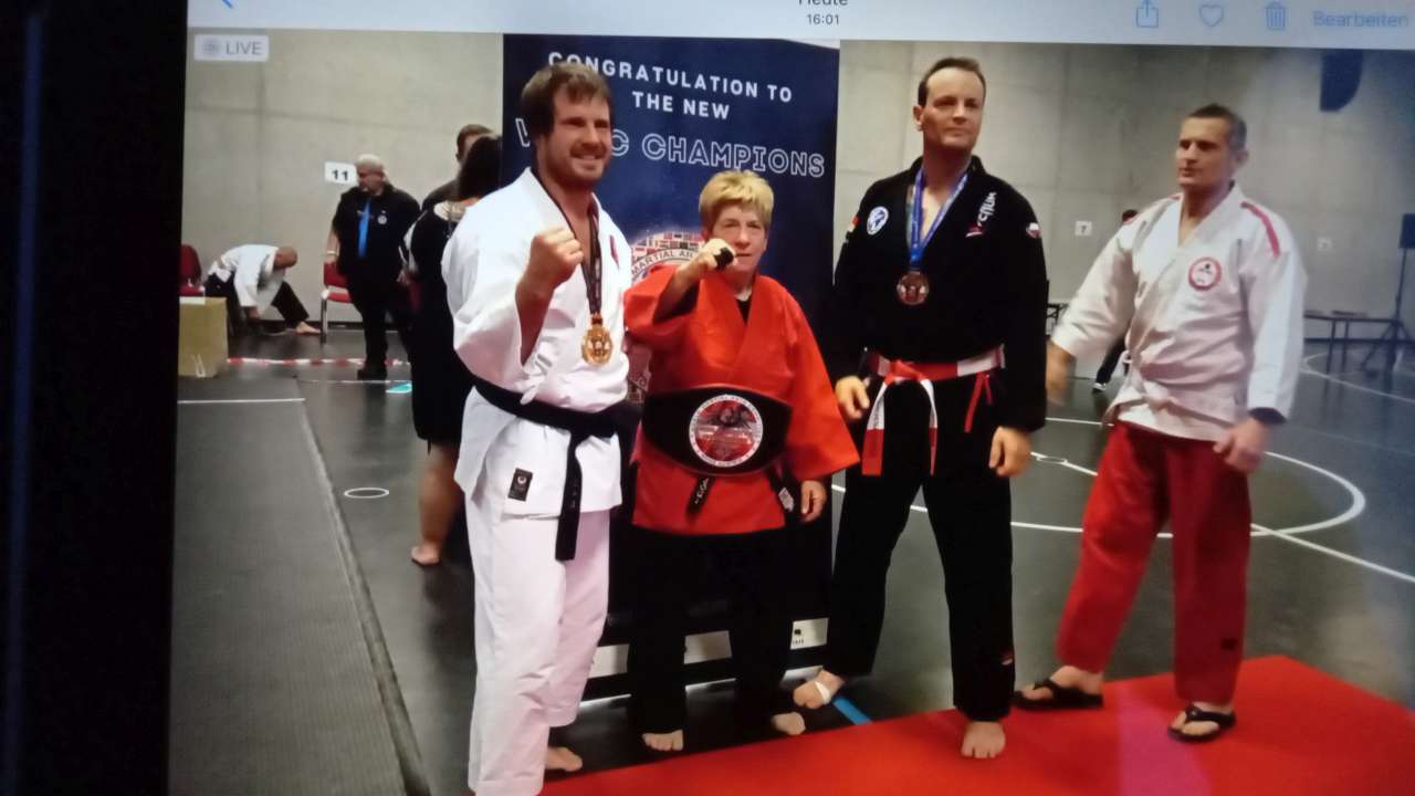 In der kreativen Selbstverteidigung hatten Yumiao und Ralph ein großes Teilehmerfeld und zeigten tollen Einsatz. Letztlich zeigten beide aber Nerven und konnten nicht mit allen Techniken punkten. Die Aktiven aus Tschechien und Italien waren zu stark und verwiesen Yumiao und Ralph auf die undankbaren vierten Plätze.